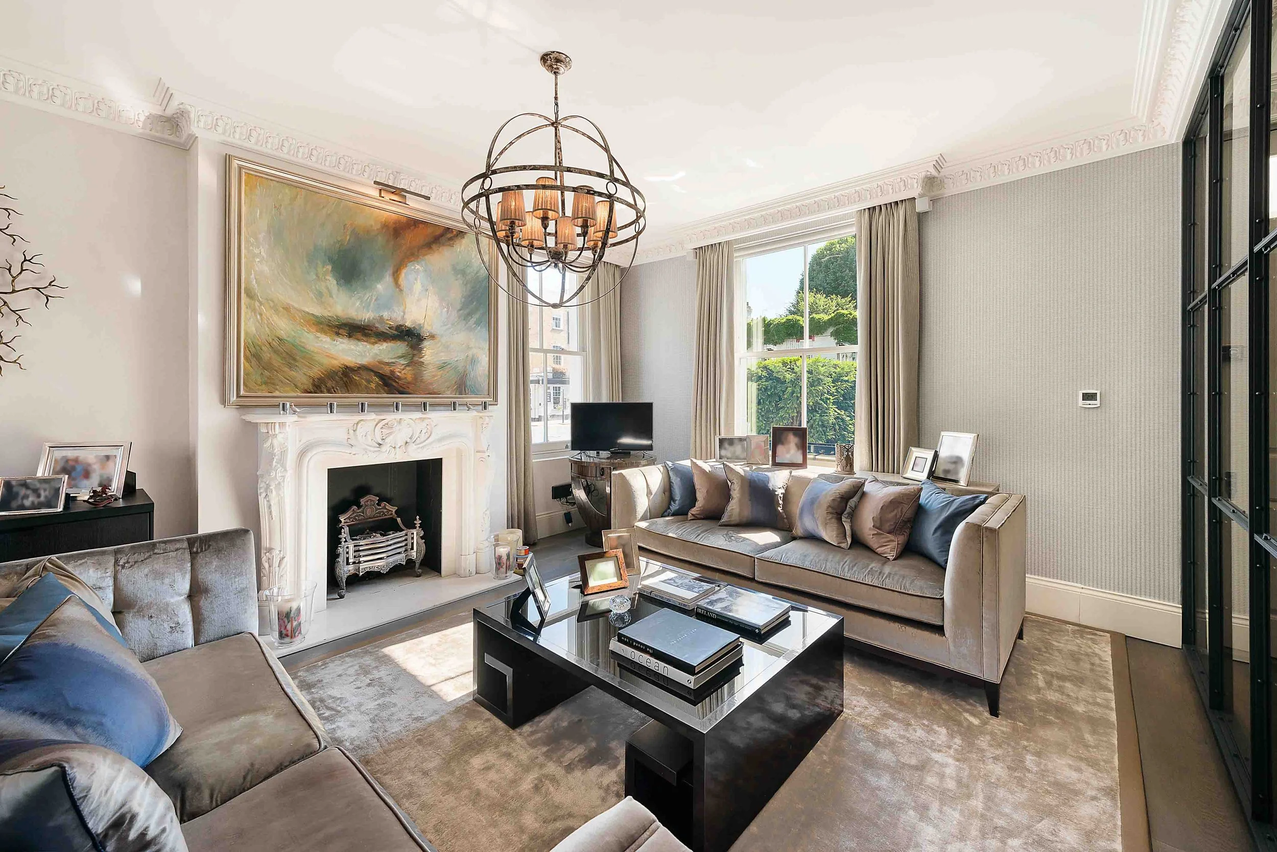 Contemporary classical show home refurbishment near Holland Park: 6 bedrooms property including several reception rooms, a private gym, swimming pool and garden